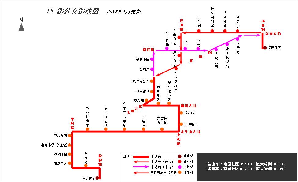 根據(jù)公交線路覆蓋區(qū)域要求,結(jié)合承包車主提出申請,為方便青花大街與盼盼路交匯處以南附近小區(qū)居民乘坐公交出行,經(jīng)公司研究,從2016年1月26日起,對公交15路線路走向進(jìn)行局部調(diào)整,具體情況如下: