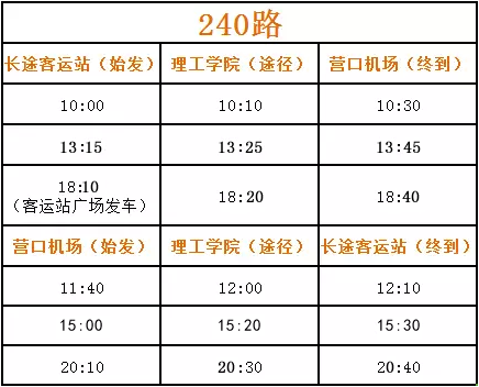 長途客運站發(fā)車時間為:10:00、13:15、18:10