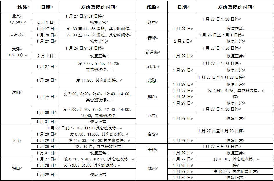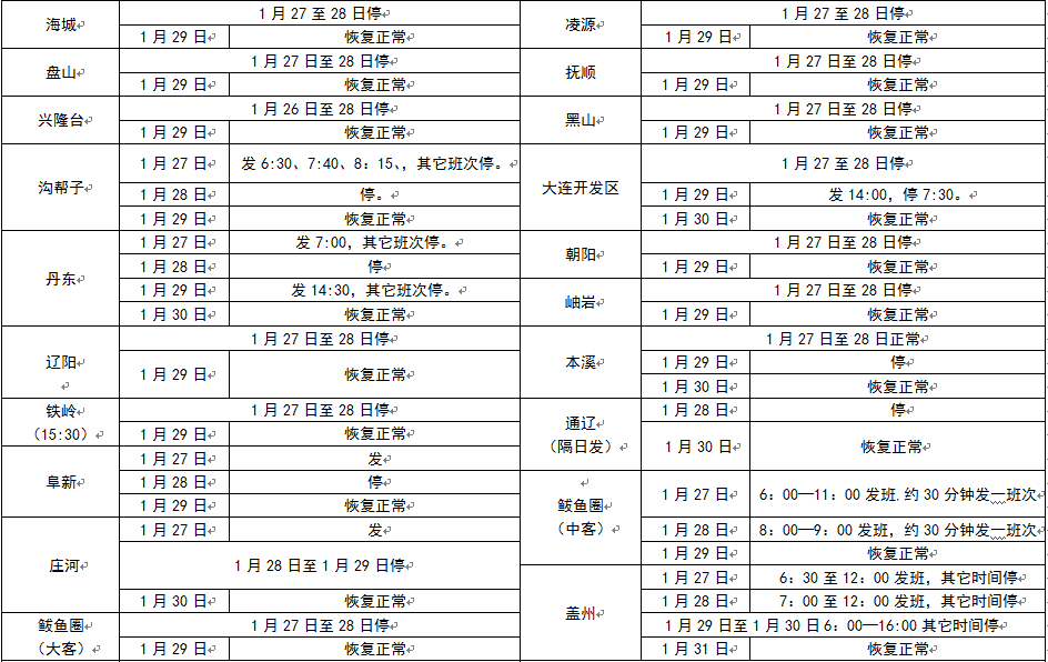 2017年春節(jié)假期班次發(fā)車時間